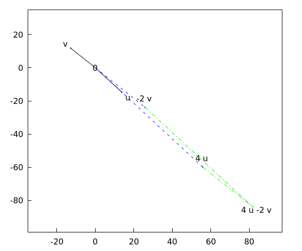 &=&\rv{4\cdot 14, 4\cdot -15}+\rv{-2\cdot-13, -2\cdot 12}\\