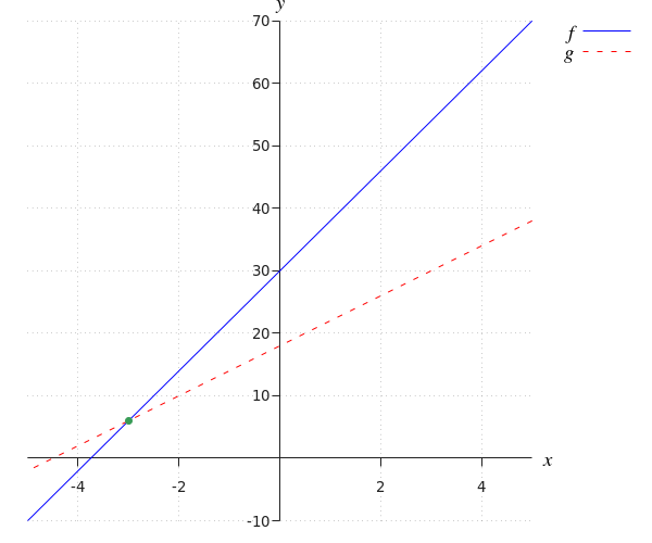 Het snijpunt is dus: #\rv{-3, 6}#.