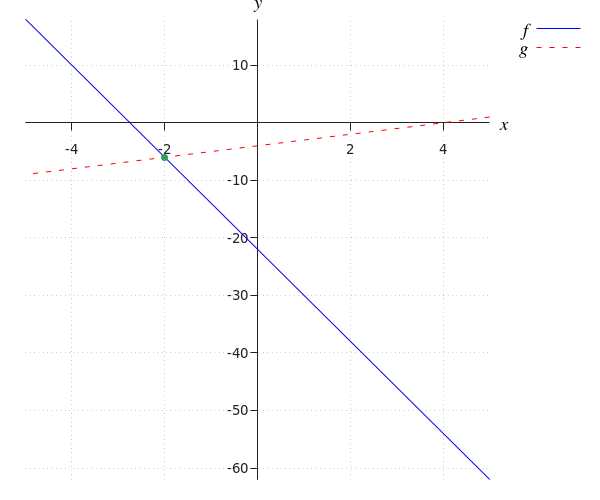 Het snijpunt is dus: #\rv{-2, -6}#.
