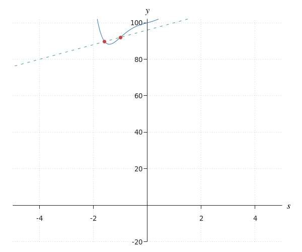 | Step 2 | We sketch the graphs #y=b^{10}+3\cdot b^5-7\cdot b+26# (blue) and #y=36-7\cdot b# (green dashed). ![]() |
