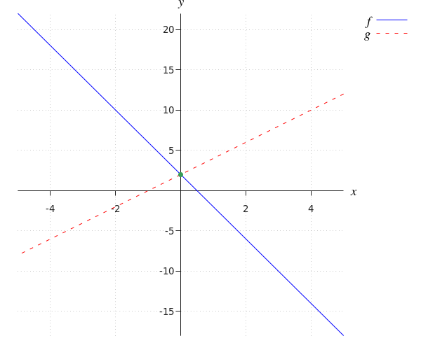 We can see that the #x#-coordinate of the intersection point is equal to #0#. The #y#-coordinate of the intersection point is equal to #2#.