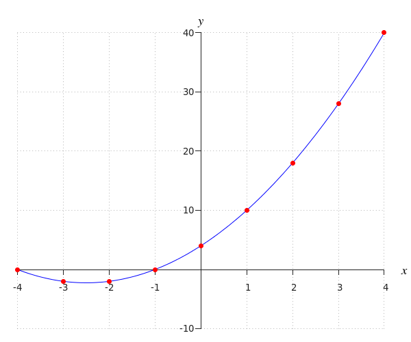 #\boldsymbol{y}# | #0# | #-2# | #-2# | #0# | #4# | #10# | #18# | #28# | #40# |
