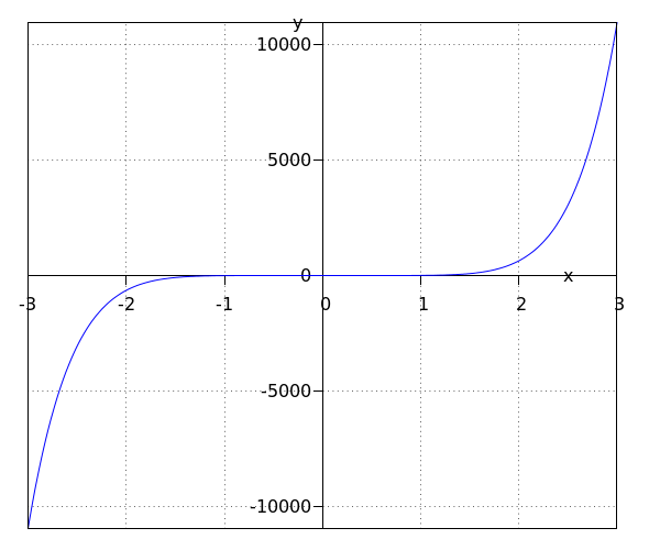 Een functie van de vorm \[f(x)=\blue{a}x^{\orange{n}}\] met #\blue{a} \ne 0# is een machtsfunctie.